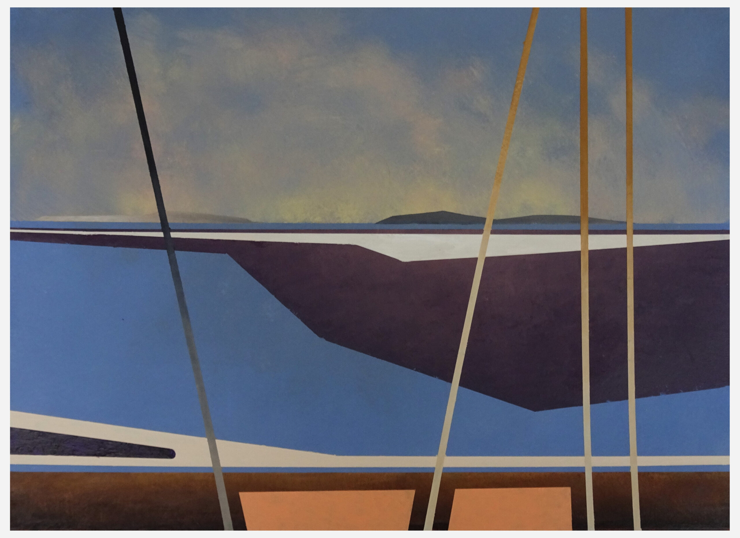 Ik ben in mijn fantasie op weg naar Vlieland of Terschelling je mag kiezen. Een schilderij in acryl, ik heb het bewust simpel gehouden het gaat om de atmosfeer. Het deels drooggevallen wad, ik sta aan het dek van een zeilboot, tegen de avond schemering, in de verte de eilanden. Een van de mooiste natuurgebieden van Nederland, zo niet van Europa. Er zijn nog al wat schilders die de Wadden als onderwerp kiezen, leent zich ook goed voor een aquarel. Maar in acryl gaat het ook, ondergrond in grijsblauw een favoriete kleur. Ik spons de lucht die oplicht door de avondzon en dan begint de opbouw, vlakje hier, vlakje daar, komt heel precies en ik ben er dagen mee bezig om dat uit te vogelen en het voor het in balans is. En gaandeweg ontstaat voor mij de illusie van dat waddenlandschap mooi abstract en strak van vorm. Al schilderend komen de ideeën vanzelf en ben ik even heel ver weg. Ik hoor de meeuwen en zie de zeehonden liggen op het wad, fantasie natuurlijk maar dromen mag.